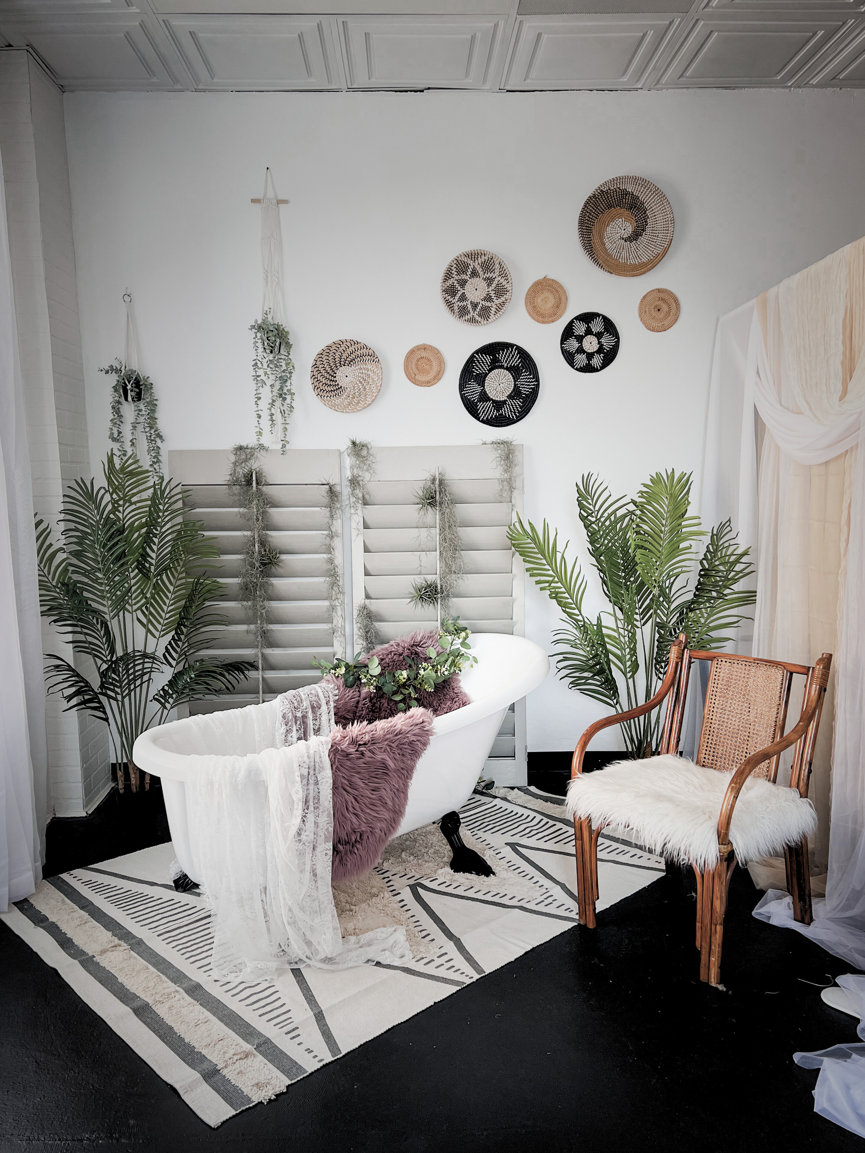 Vanessa, photographer and artistic designer combined her craft with Jeremiah, a phenominal artistic craftsman and contractor to create a local space for photographers to utilize. We strive to create a space for your artistic freedom and will be proactive at changing vignettes a few times a year to keep it fresh and fun. There are also many different photography options such as dropdown backdrops and lighting should you need them.